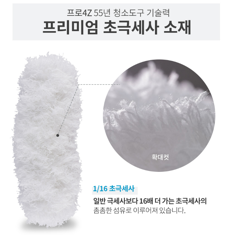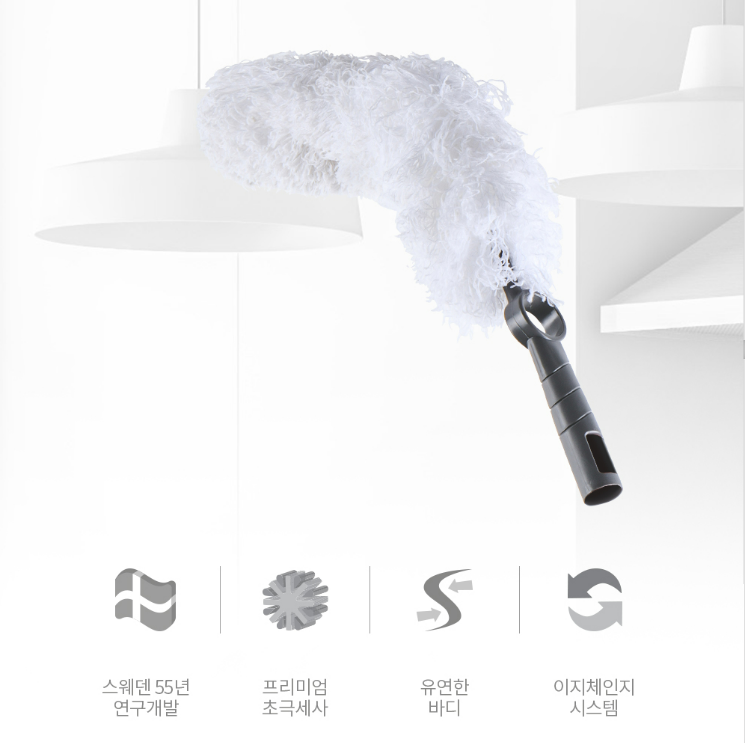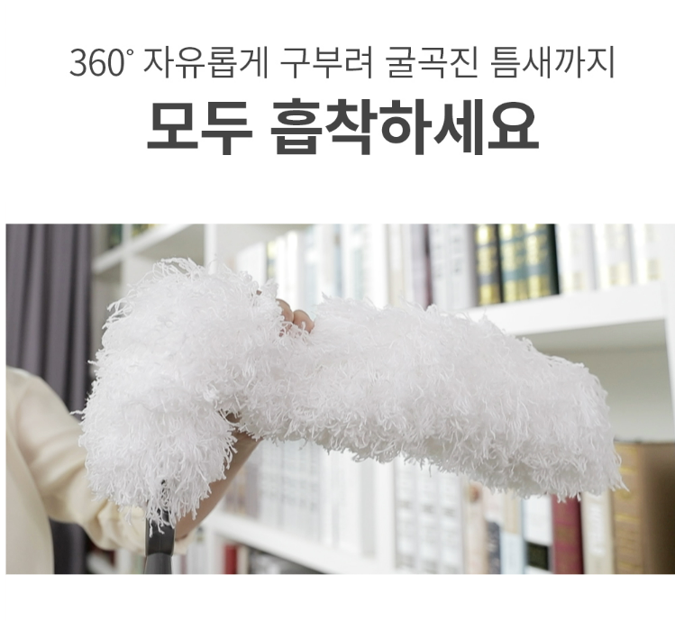 먼지 떨어 내지 않고 흡착하는 초극세사 먼지 떨이로 일반 극세사보다 16배 더 가는 초극세사의 촘촘한 섬유로 이루어져 있어 먼지를 쉽게 제거할 수 있습니다.