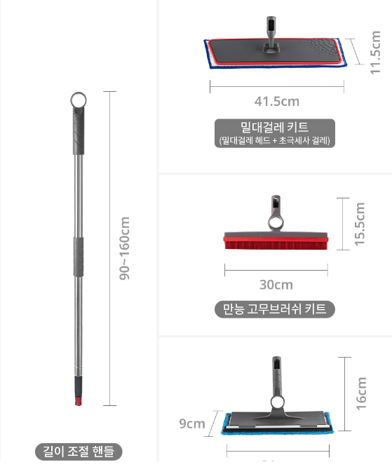 # 미세먼지 밀대 걸레 #만능 고무브러쉬 #유리창 청소도구 # 초극세사 먼지떨이 # 길이조절 핸들