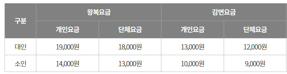 * 단체(20인이상)은 별도문의 필요