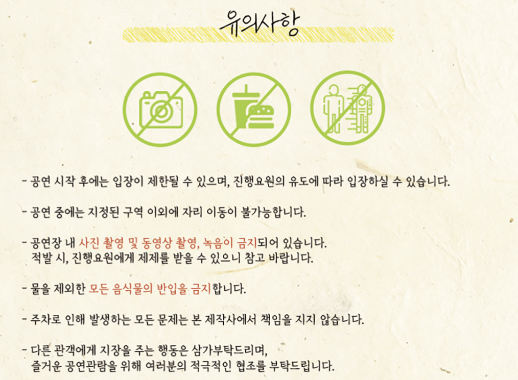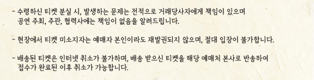 - 티켓 취소 마감 : 공연 전일 17시