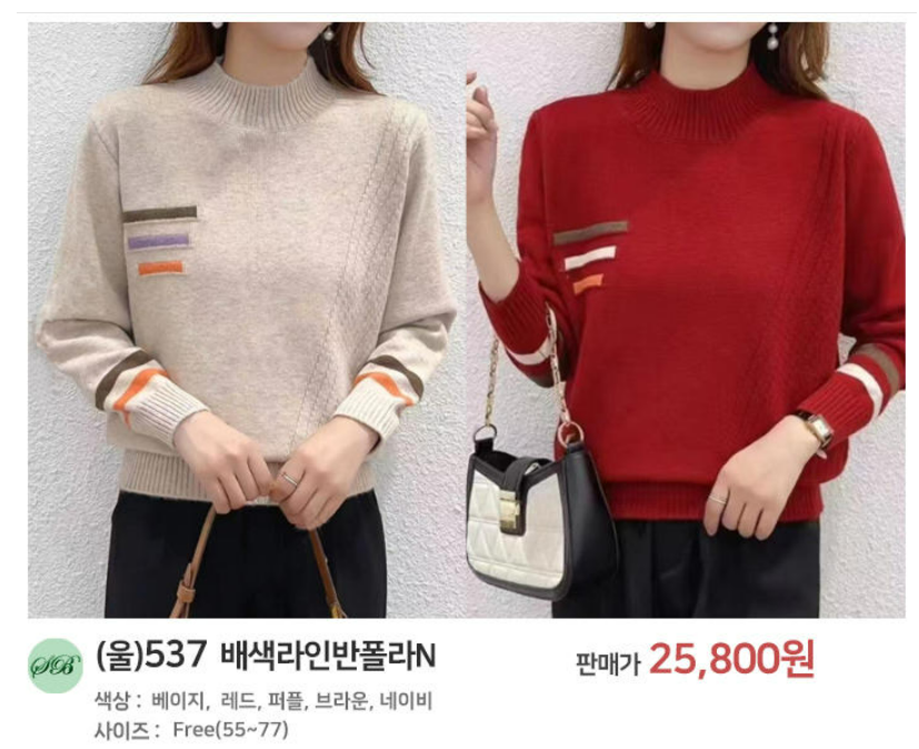# 새로본(울)808니트 여성라운드 반폴라 여자스웨터 자수 미시 가을 겨울