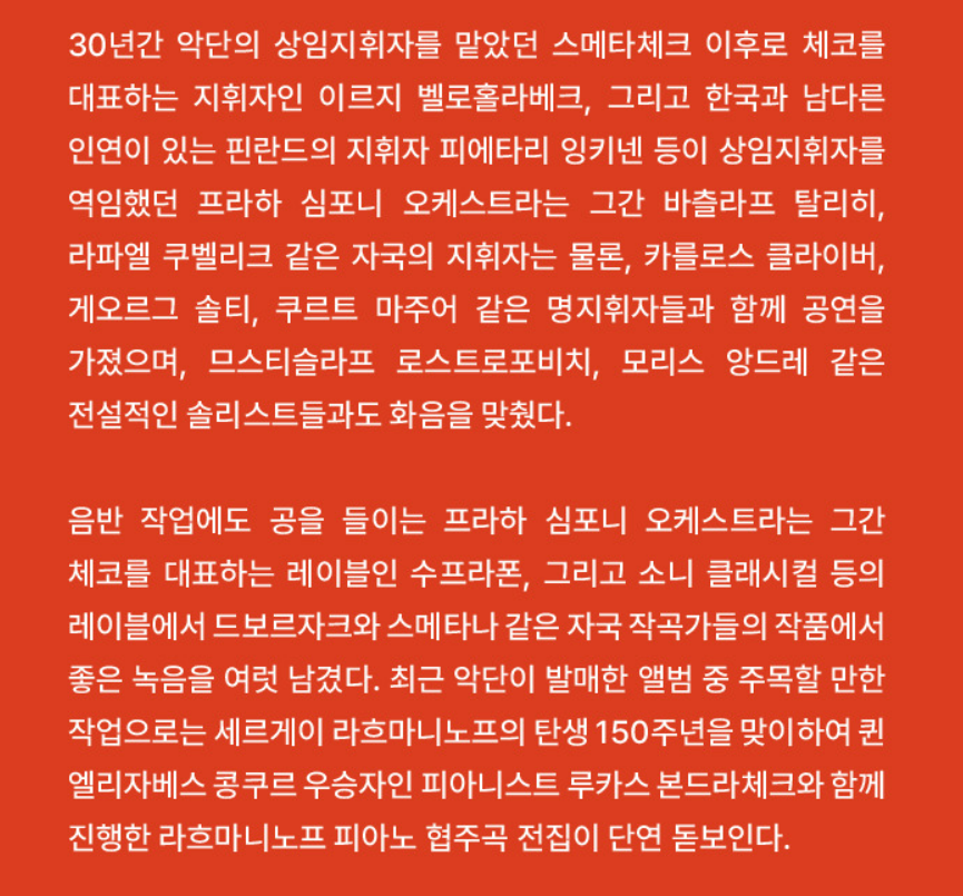 중세 유럽의 소리를 그대로 간직한 프라하 심포니 오케스트라의 내한공연이 2024년 1월 18일 롯데 콘서트 홀에서 열립니다. 토마시 브라우너 지휘로 공연되는 프라하 심포니 오케스트라 티켓을 아래에서 예매하세요.